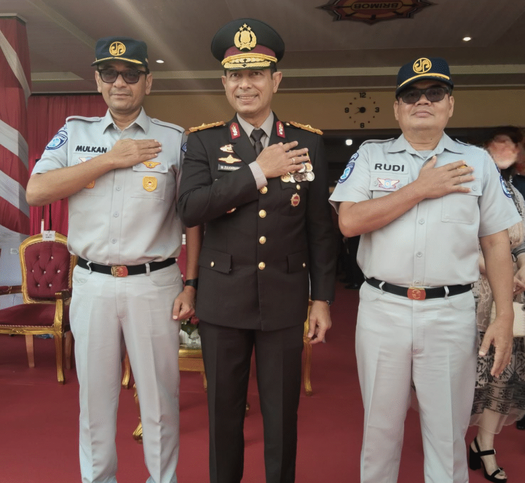 PALEMBANG – PT Jasa Raharja Kanwil Sumatera Selatan turut serta dalam upacara dan tasyakuran peringatan Hari Bhayangkara ke-79 yang digelar di Mako Satbrimob Polda Sumsel pada Selasa, 1 Juli 2025. Acara sakral ini dipimpin oleh Gubernur Sumatera Selatan, Bapak Herman Deru, dan didampingi oleh Kapolda Sumsel, Irjen Pol. Andi Rian Ryacudu Djajadi, S.I.K., M.H. dihadiri oleh Kepala Jasa Raharja Kanwil Sumsel, Mulkan serta Kabag Operasional Jasa Raharja Sumsel, Rudi Elvis dan Stake holder terikat.